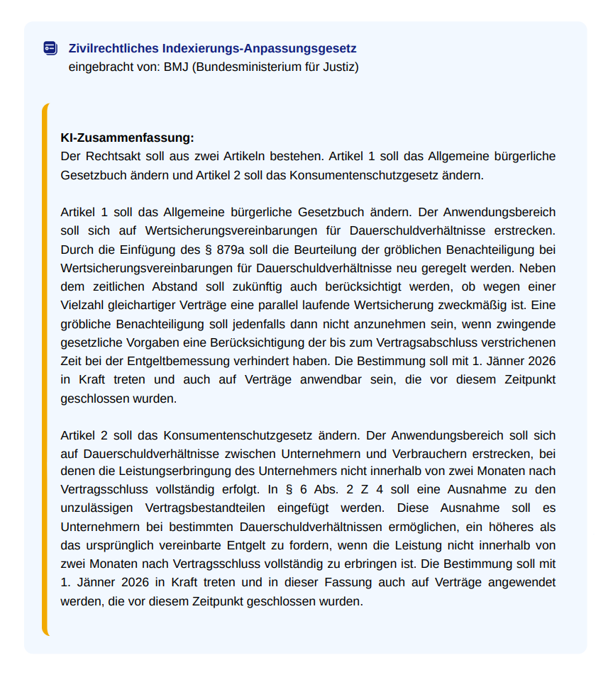 Bundes- und Landesgesetzblätter Österreichs mit KI-Zusammenfassungen.